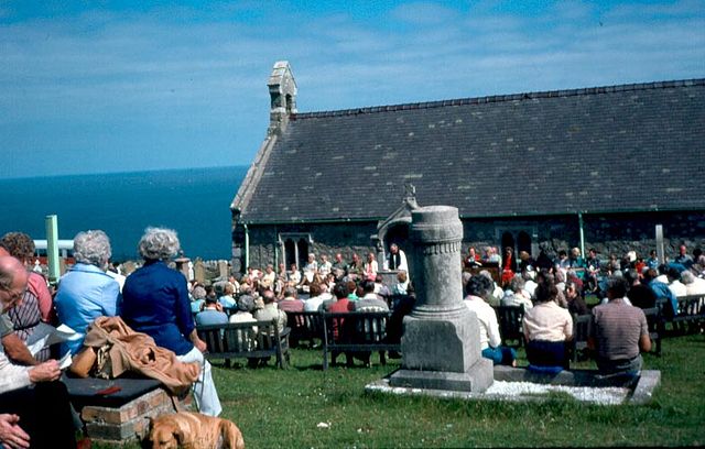 English: Open Air Sunday Morning Service at Saint Tudno's Church on the Great Orme. photograph taken by me