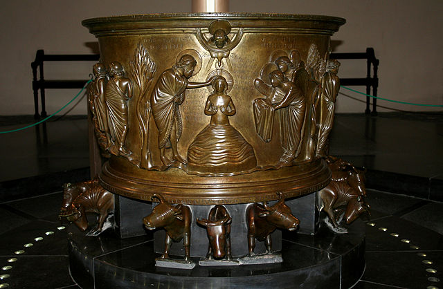 Deutsch:  Lüttich (Belgien), St.-Bartholomäus-Kirche - Taufbecken von Renier de Huy (Beginn des 19. Jahrhundert).