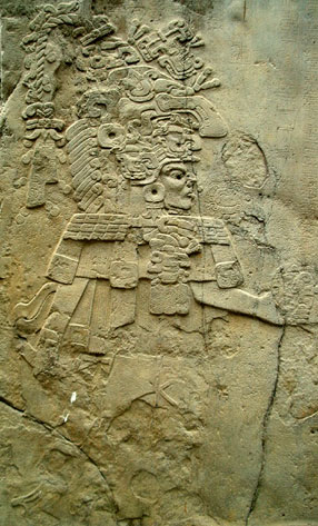 Photograph of left side of La mojarra Stela 1 at the Museum of Anthropology at Xalapa, Vera Cruz, Mexico. |