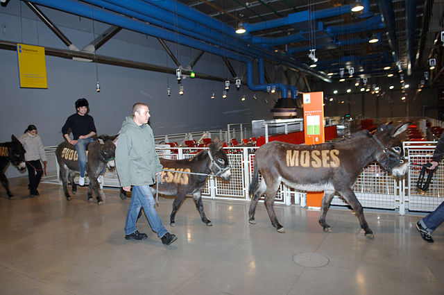 Français : Souhed entre à dos d'âne dans le Centre Georges Pompidou, Paris, France