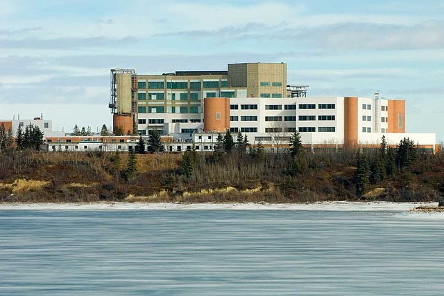 Rockyview General Hospital overlooking Glenmore Reservoir in Calgary, Alberta. Photo by Chuck Szmurlo taken March 11, 2007 with a Nikon D200 and a Nikon 70-200 f2.8 lens