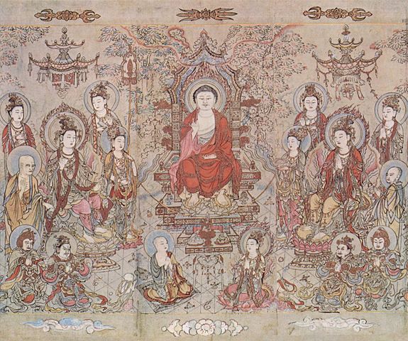 Deutsch: Detail einer Wandrolle mit buddhistischen Bildern