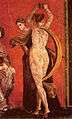 • Italiano: Iniziata e menade danzante. Dettaglio dell'affresco della Villa dei Misteri a Pompei, dipinto nel "secondo stile" pompeiano, del 60/50 a.C. circa.