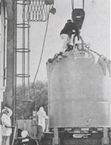 English: Fifty-ton shipping cask built at Oak Ridge National Laboratory which can transport up to 1 gram of 252Cf Seaborg, G.T. (1994) Modern alchemy: selected papers of Glenn T. Seaborg, World Scientific, ISBN 9810214405, p. 245
