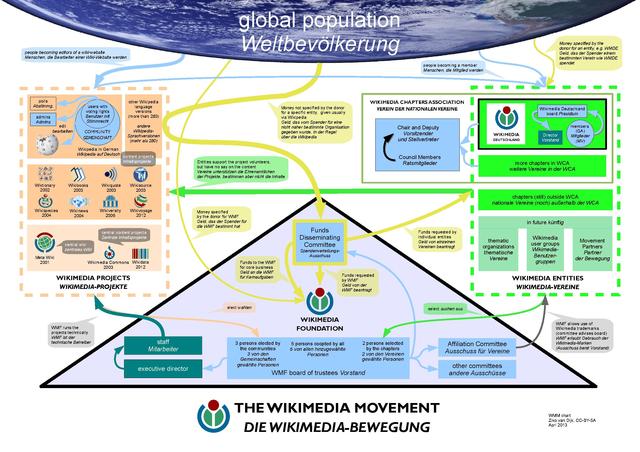 Deutsch: Die Wikimedia-Bewegung im November 2012. Organigramm mit der Wikimedia Foundation, den Vereinen und den Projekten.
