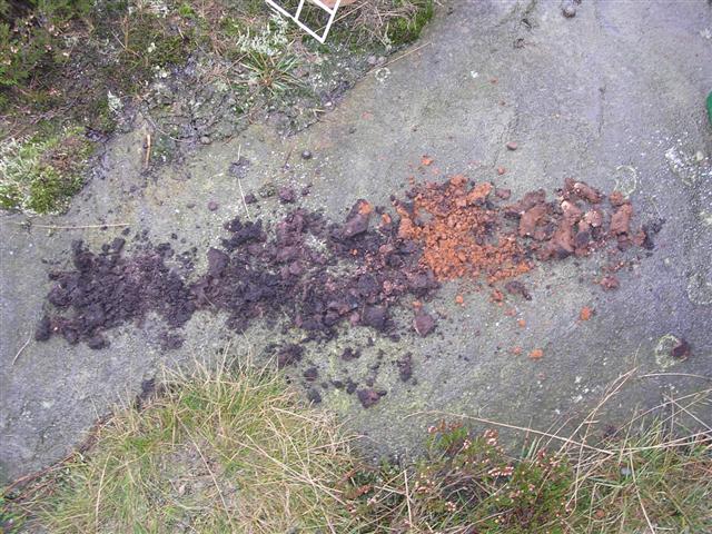 English: Photo taken by myself showing soil horizons THIS PHOTO SHOWS HOW THE SOIL HORIZON SITS ON TOP OF BEDROCK/SUBSOIL/TOPSOIL&WHAT IT LOOKS LIKE &HOW THE PARELLEL LINE SHAPES
