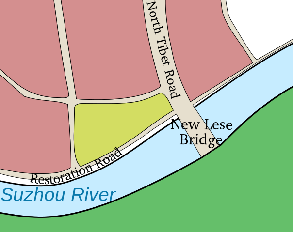 English: Map of Sihang Warehouse and surrounding areas during the Battle of Shanghai Sihang Warehouse, garrisoned by NRA