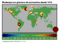 The effective rate of change in glacier thickness, also known as the glaciological mass balance, is a measure of the average change in a glacier's thickness after correcting for changes in density associated with the compaction of snow and conversion to ice. The map shows the average annual rate of thinning since 1970 for the 173 glaciers that have been measured at least 5 times between 1970 and 2004 (Dyurgerov and Meier 2005). Larger changes are plotted as larger circles and towards the back.