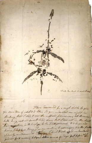 Autograph letter concerning the discovery of plesiosaurus, from Mary Anning.