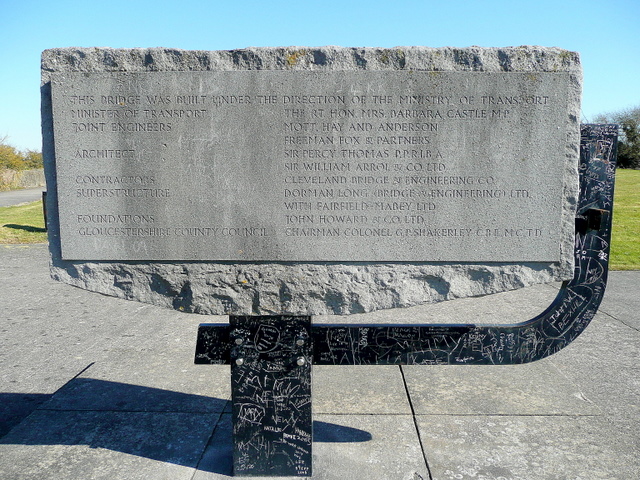 English: Monument to the Severn Bridge Despite the graffiti, it is still an impressive piece of work (like the bridge itself!).