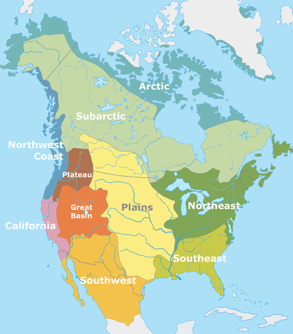Classification of indigenous peoples of North America according to Alfred Kroeber, English-language version of map