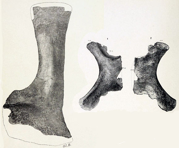 Alamosaurus sanjuanensis holotype scapula and paratype ischium.
