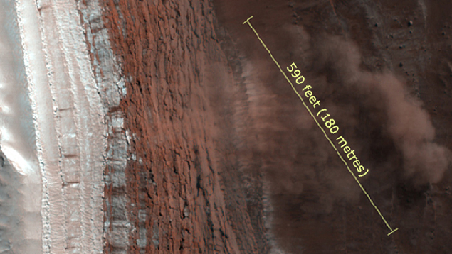 This file was originally uploaded at en.wikipedia as  Mars Avalanche with Scale.jpg, before it was transfered to Commons.