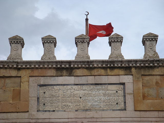 Polski: Napis z górnej części bramay Bab el Bahr lub Porte de France - wyznacza wejście do medyny.