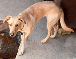 English: Mixed breed dog, whose parents were a pedigreed German Shepherd and a pedigreed Golden Retriever."Amber" at 14 months (still a skinny teenager) Taken Feb. 1980 by Elf