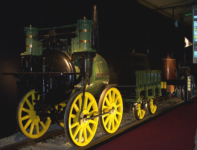 • English: Replica from 1980 of the historic steam locomotive Sans Pareil from 1829, a competitor of the Rainhill Trials, in the Transport Museum in Nuremberg in the exhibition "Adler, Rocket and Co."