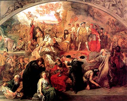 Sir John Gilbert's 1849 painting: The Plays of William Shakespeare, containing scenes and characters from several of William Shakespeare's plays. Since the artist died in 1897, this work is now in the public domain. |