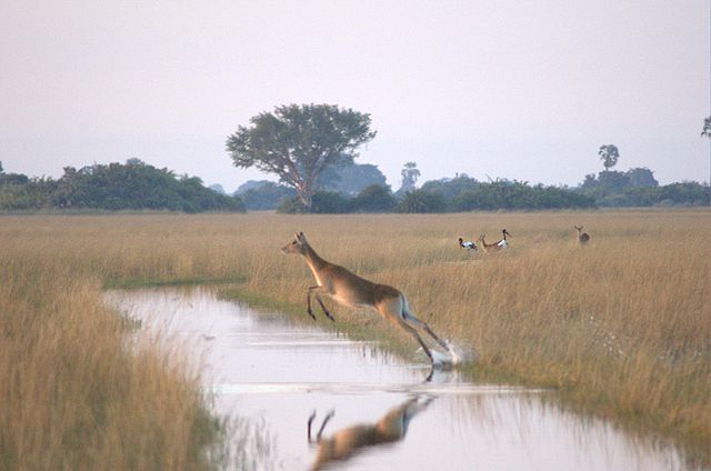English: A female  en:Lechwe ( Kobus leche) jumping over a patch of clear water in  en:Okavango Delta,  en:Botswana, June 2005. The original is available (in Nikon's raw format) under a different license.  пан Бостон-Київський 20:35, 17 March 2006 (UTC)
