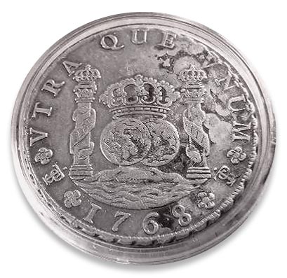 Real de plata colonial española de la casa de la moneda de Potosí, Alto Perú (ahora Bolivia). Dominio público por ser moneda y por antiguedad ( 1768).