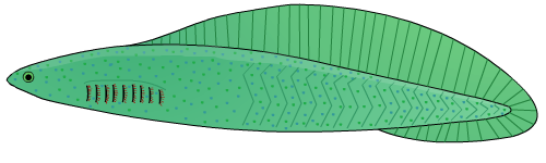 Reconstruction of  Haikouichthys ercaicunensis. Based on actual fossil evidence. |