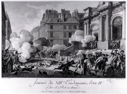 English: The Journée of 13 Vendémiaire, Year 4, The Saint Roch Church, Rue Saint-Honouré, Paris.