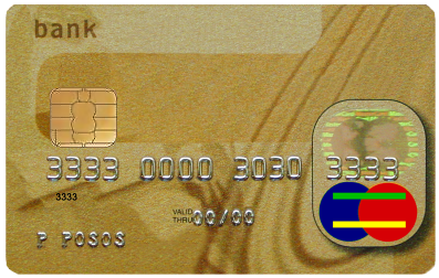 English: Basic creditcard / debitcard / smartcard graphic. Name and numbers are made up. No existing banklogos or similar to avoid copyright/trademark issues.