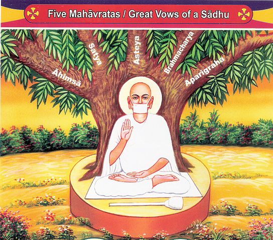 English: This image illustrates the Mahavrata or the five great vows of a Jain ascetic