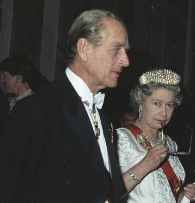 English: Cropped version of  File:Bundesarchiv Bild 199-1992-089-19A, Britische Königin Elisabeth II. in Brühl.jpg: Queen Elizabeth II and Prince Philip in Germany, October 1992