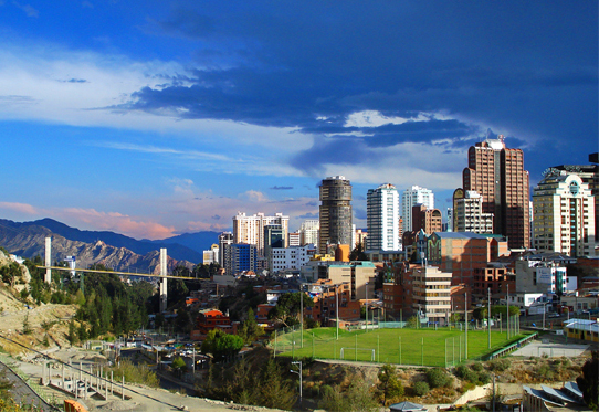 English: View of La Paz from Av. del Ejército in 2008. At the back, The Americas Bridge.