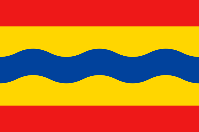This image depicts a flag of a Dutch municipality or province. These flags are registered with the Hoge Raad van Adel, usage of the flag is often restricted by municipal rules and laws. In view of Dutch legislation this image is regarded as being in the public domain, as are reproductions of this flag.