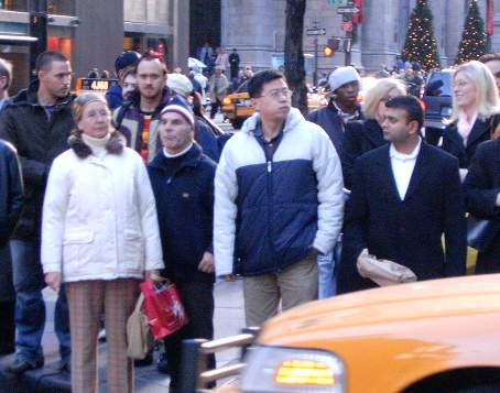 Fifth Avenue in Midtown, New York City crowd, mid-December 2004. People waiting to cross the street.