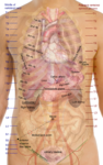 Adding text and lines: Derive "from scratch"By this method, body diagrams can be derived by pasting organs into one of the "plain" body images shown below. This method requires a graphics editor that can handle transparent images, in order to avoid white squares around the organs when pasting onto the body image. Pictures of organs are found on the project's main page. These were originally adapted to fit the male shadow/silhouette.
