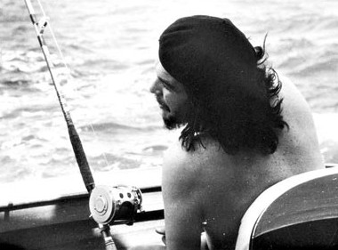 English: On May 15, 1960, Che Guevara along with boat mate Fidel Castro competed against acclaimed author Ernest Hemingway at the "Hemingway Fishing Contest" in Havana, Cuba. In March of 2010, the original proof of this photo sold for £6,600 to a UK-based private collector at the Dominic Winter Auction, in Cirencester.
