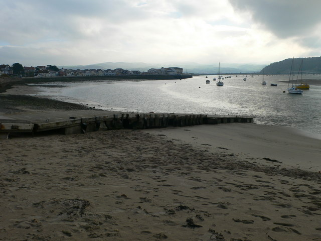 English: The beach at Deganwy The Conwy estuary, looking south towards Conwy.