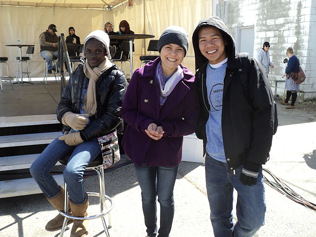 English: Three of the nearly 300 volunteers at the second annual Treefort Music Fest holding the fort at the VIP Tent in downtown Boise, Idaho.