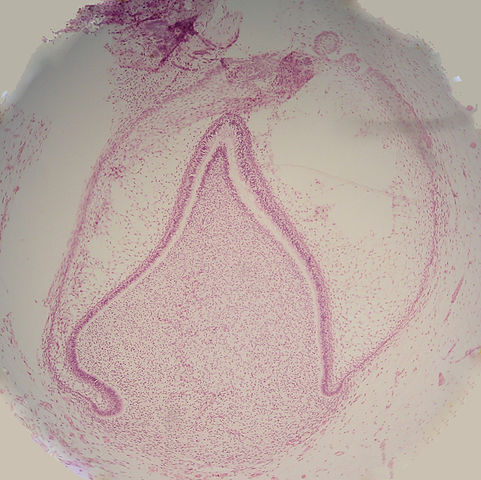 Histology of developing tooth with no labels. Tooth bud is in late bell stage.