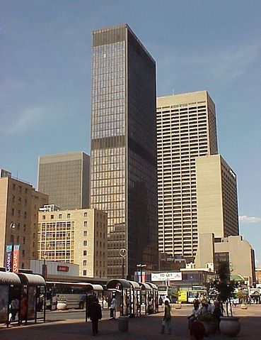 A photograph of one of the skyscrapers of Johannesburg, South Africa. Used under GFDL licence with written permission from original artist:
