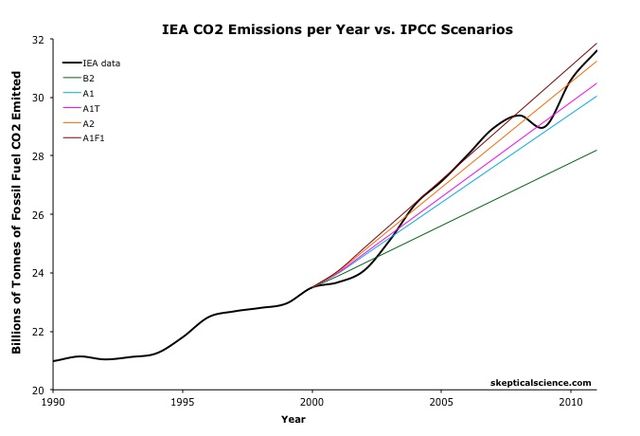 | DescriptionGlobal Warming Observed CO2 Emissions from fossil fuel burning vs IPCC scenarios.jpg |