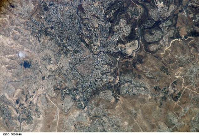 English: Astronaut Photo of Jerusalem, Israel taken from the International Space Station (ISS) during Expedition 13 on July 22, 2006.