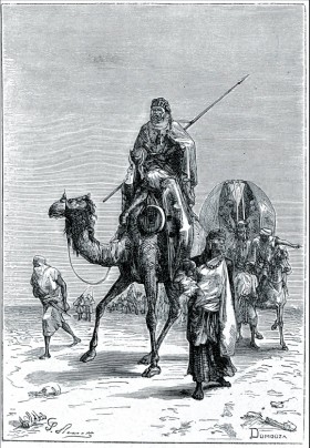 English: Benjamin of Tudela in the Sahara, in the XIIth century (Engraving by Dumouza, XIXst century
