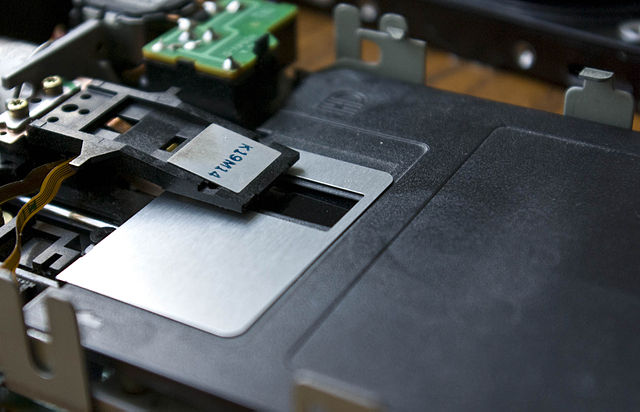 English: A Floppy drives La tête de lecture d'un lecteur de disquette |