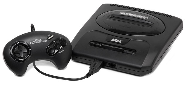 English: A model 2 Sega Genesis, shown with 3-button controller. This is the JPG version.