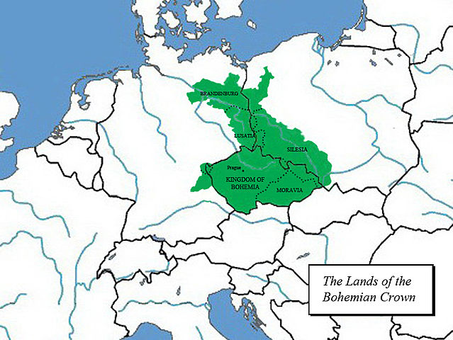 Česky: maximální rozsah zemí Koruny české za Karla IV.