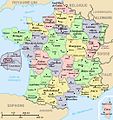 Map of official départements and régions of France, with French titles (in JPEG format for larger, rapid display: 5x faster than SVG). French: Départements et régions, en Francais.