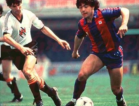 English: Maradona playing for Barcelona. Picture from Argentine magazine El Gráfico.