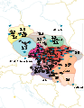 1: od 833 do 907: Moravské kniežatstvo 2: od 833 do 907: Nitrianske kniežatstvo 3: spolu s 2 alebo spolu s 4 4: od 833 alebo od vlády Rastislava do (?)896: Nitrianske kniežatstvo 5: spolu s 1 alebo od roku 853/54 do (?)907: Moravské kniežatstvo 6: od roku 858 do (?)894: Nitrianske kniežatstvo 7: spolu s 2 alebo spolu s 22: 8: spolu s 6 alebo spolu s 20 9: od vlády Rastislava (846-870) alebo Svätopluka I. (871-894) do 896: Nitrianske kniežatstvo 10: spolu s 8 alebo spolu s 20 11: od 874 do (?) 907: Visliansko 12: pravdepodobne spolu s 11 13: od 880 do ?: Sliezsko (podľa niektorých názorov nebolo pripojené) 14: pravdepodobne spolu s 14 15: od 890 do 897: Lužica 16: veľmi pravdepodobne spolu s 15 17: veľmi pravdepodobne spolu s 15 18: pravdepodobne spolu s 15-17 19: od 888/890 do 894: Čechy 20: od 883/884 do 894: Panónske kniežatstvo 21: veľmi pravdepodobne spolu s 20 22: spolu s 20 (a 21): možno Panónske kniežatstvo 23: od 881/882 do 896: Zátisie 24: pravdepodobne spolu s 23 25: od vlády Svätopluka (871-894) do (?) 896 26: od vlády Svätopluka (871-894) do ?27: spolu s 23 alebo spolu s 24