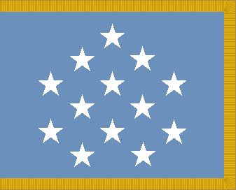 - DESCRIPTION: A light blue flag with gold fringe bearing thirteen white stars in a configuration as on the Medal of Honour ribbon.