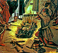 Español: La pintura describe la historia de una disputa entre Santo Domingo y los albigenses (cátaros), en los que los libros de ambos fueron sometidos a una prueba de fuego, y los de Santo Domingo fueron milagrosamente preservados de las llamas (milagro de Fanjeaux).