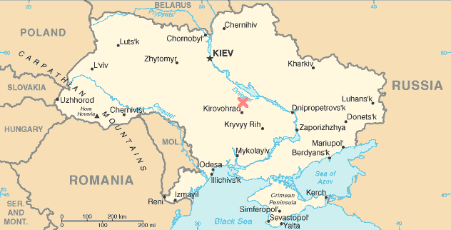 English: Location of the Boltysh Crater in Ukraine. Adapted from public domain map en::Image:Up-map.png.