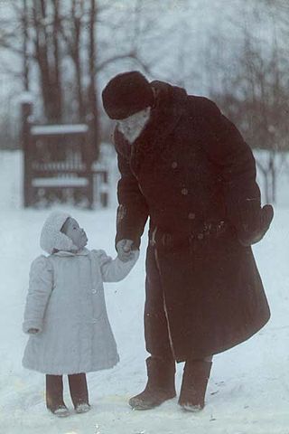 Leo Tolstoy (1828-1910) with his granddaughter in Yasnaya Polyana.